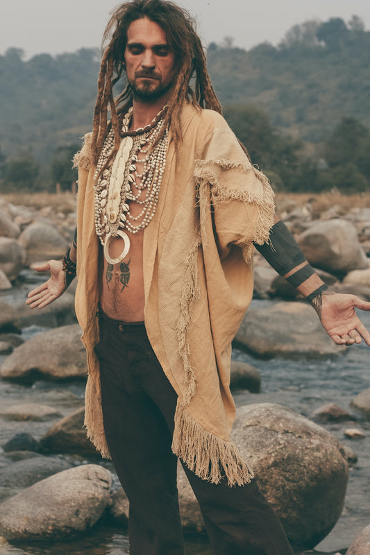 MOUNTAIN BIRD Poncho ⋙ Frayed Wild Raw Silk Poncho ⋘ Medicine Clothing