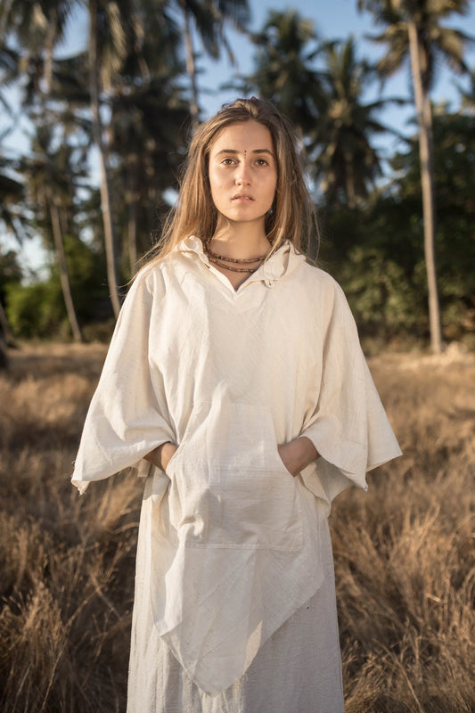 Good Earth Open Poncho ~ Handwoven Khadi Cotton