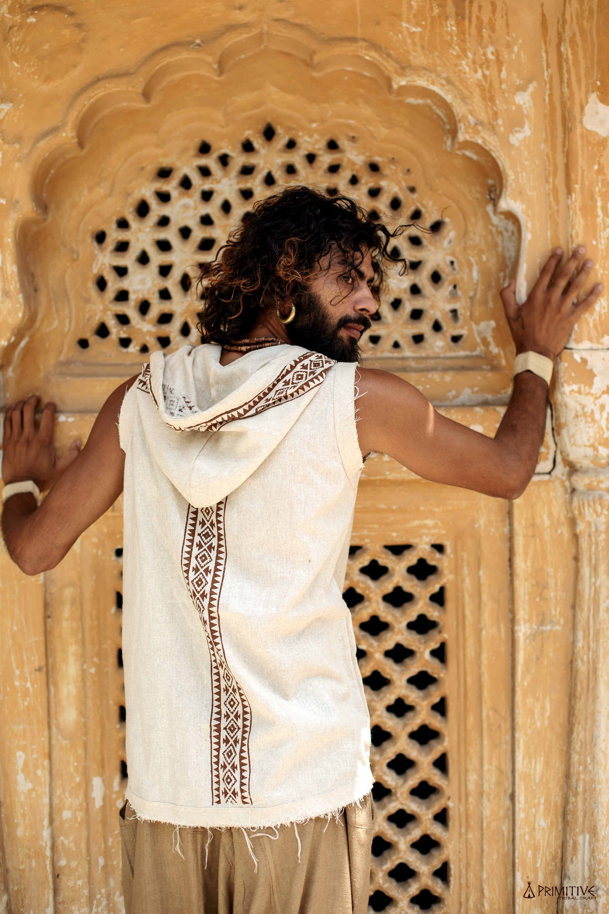 ❂ Handwoven Raw Silk sleeveless shirt with hoodie and traditional block print ~ font & back middle block print & all arround the hoddie ~ made from the softest Handwoven Raw Silk ~ my favorite textile to wear ~ very raw and earthy and wild in texture ~ hugs your skin ❂