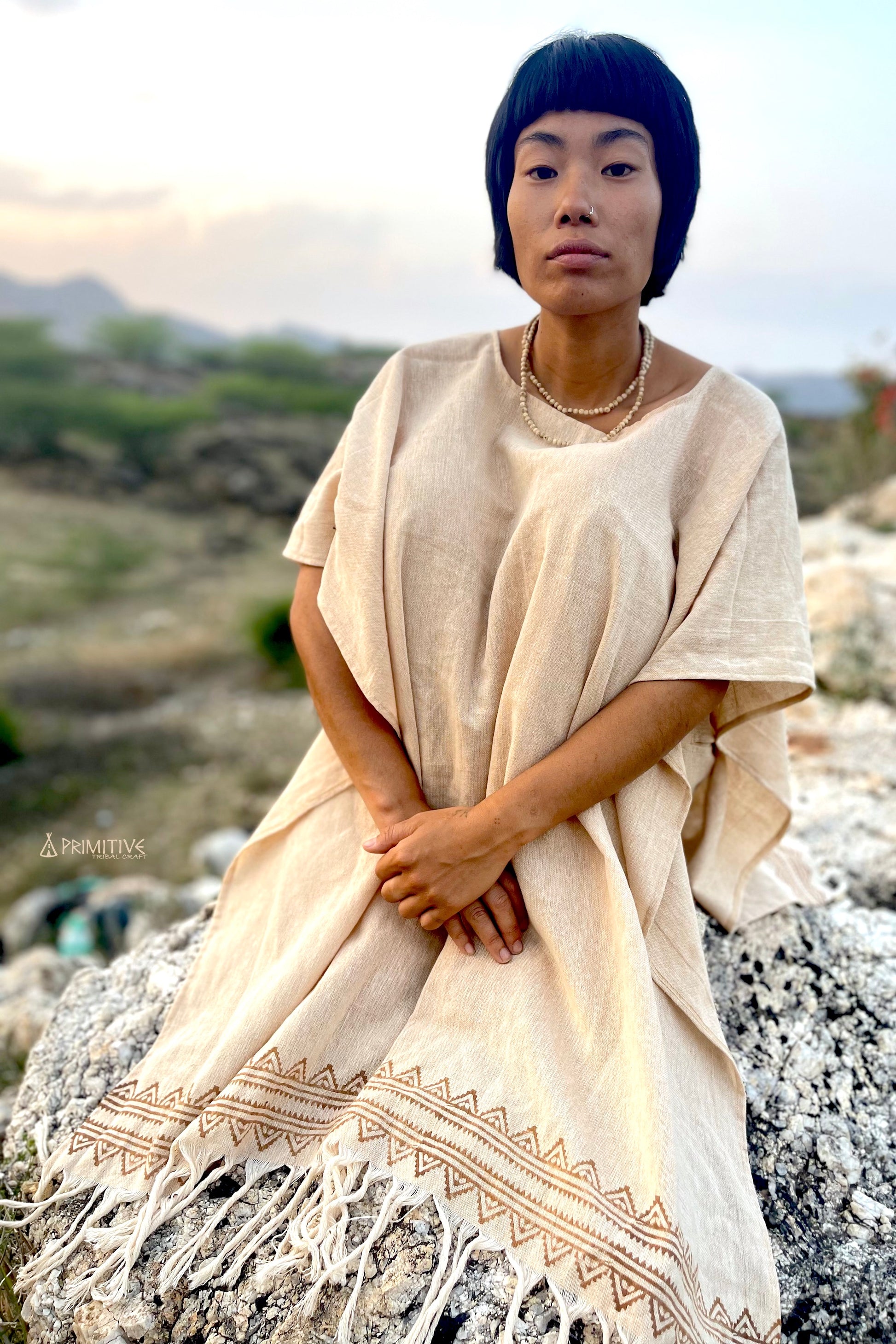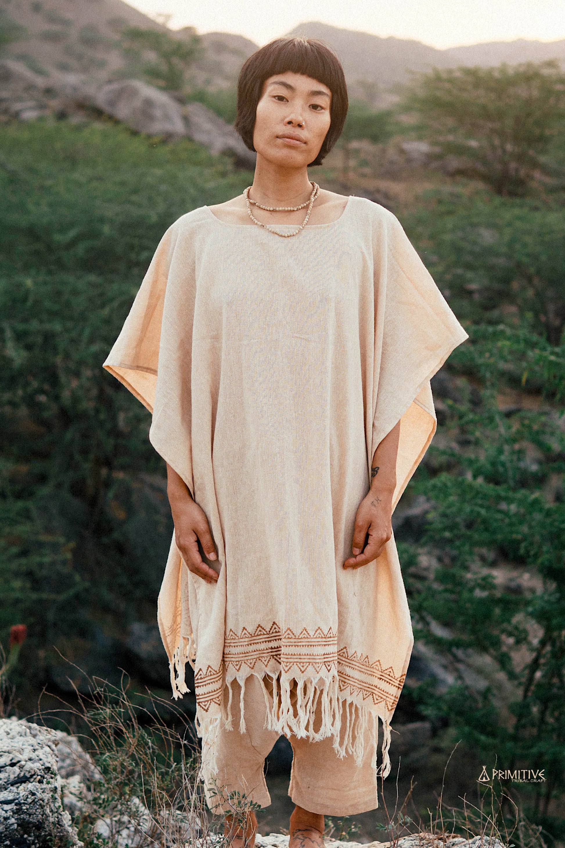 Saya Poncho »« Raw Cotton Poncho with Tribal Block Print