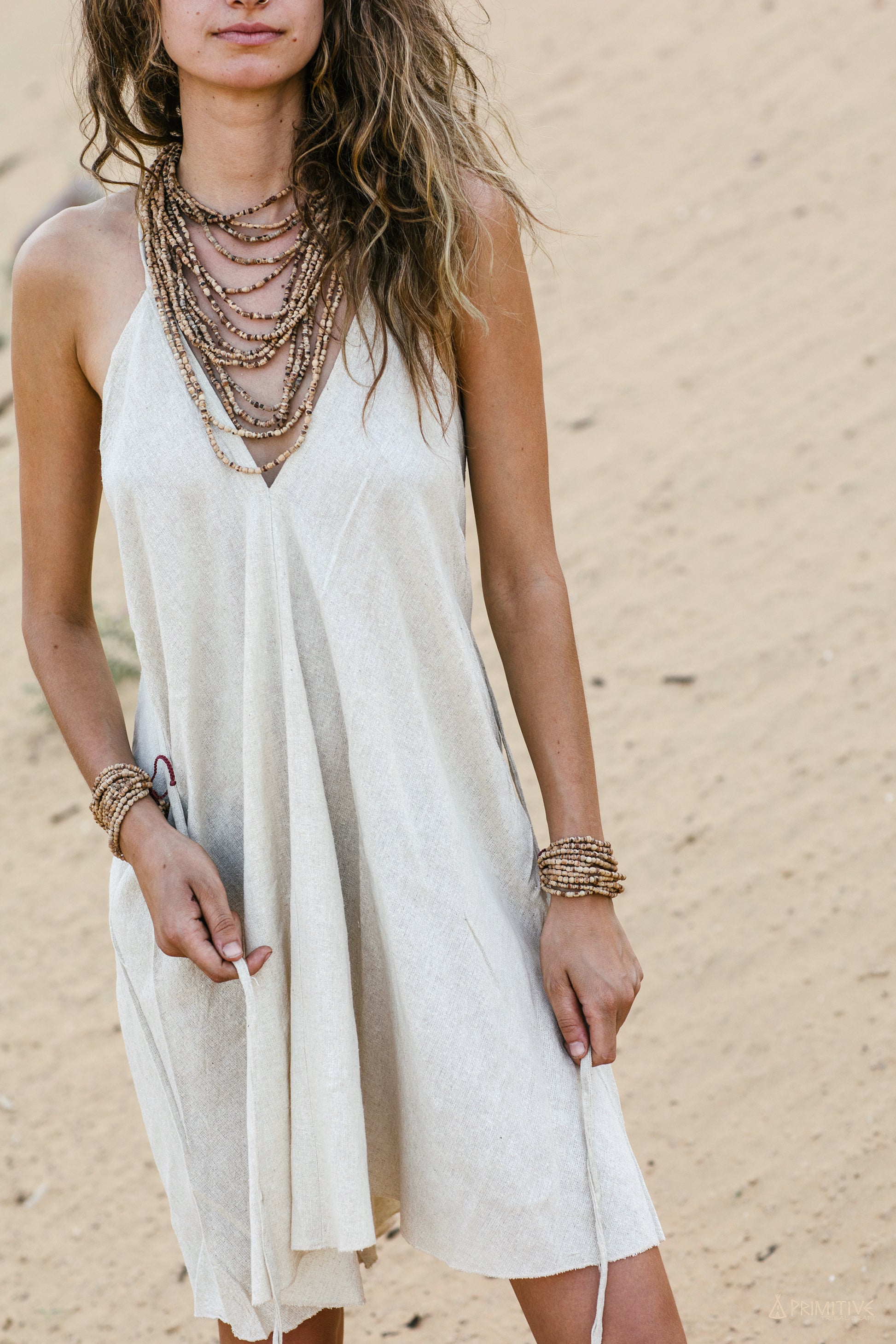 ❂ beautiful short dress with V-Neck and a deep V-Back ~ the butterfly dress is great to wear on summer days or festivals. Versatile, comfortable, free size & adjustable ~ ties with a string around neck and waist ~ made from the softest Handwoven Raw Silk ~ my favorite textile to wear ~ very raw and earthy and wild in texture ~ hugs your skin ❂