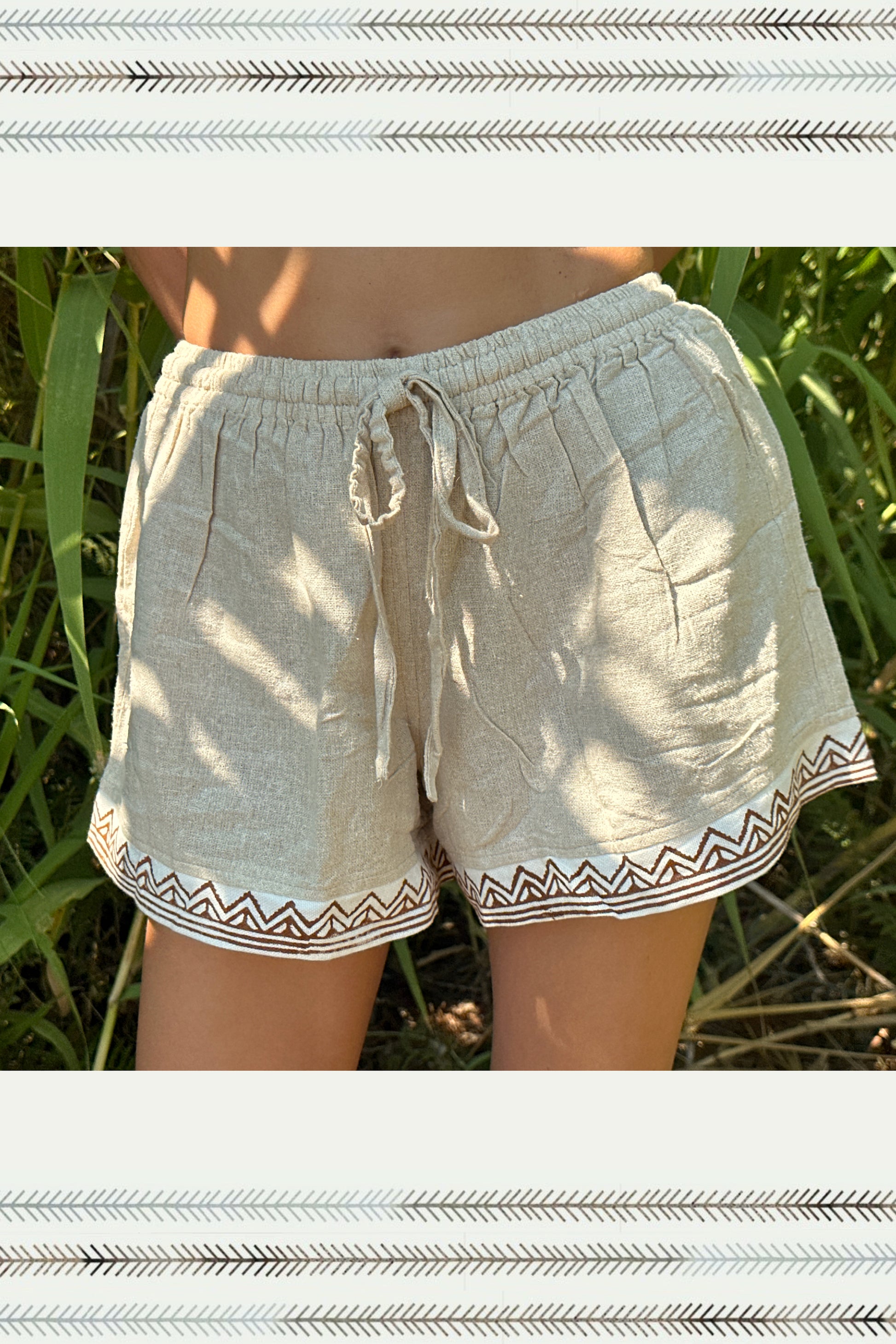 ❂ Tribal shorts great for any summer day made of soft Handwoven Raw Silk with Hand Block Print ❂