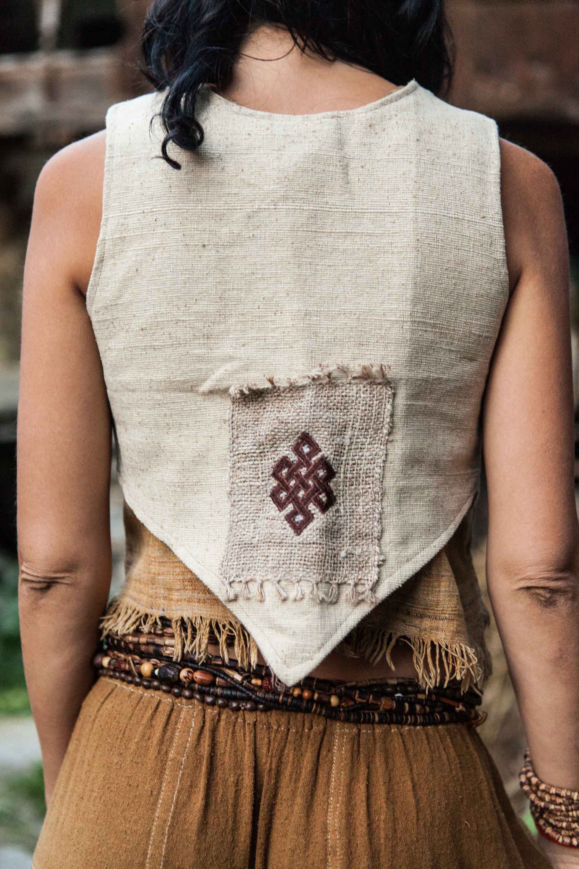 Weste mit besticktem Patch ~ Handgewebte Rohseide