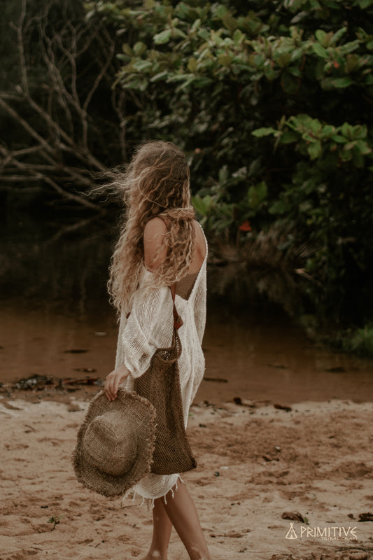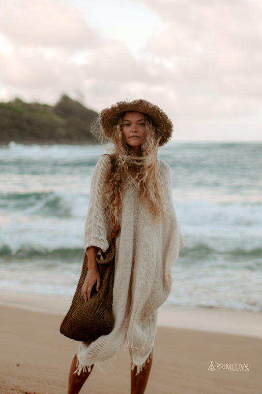 Talia Outfit >> Knitted Wild Hemp Beach Top + Raw Silk Harem Pants