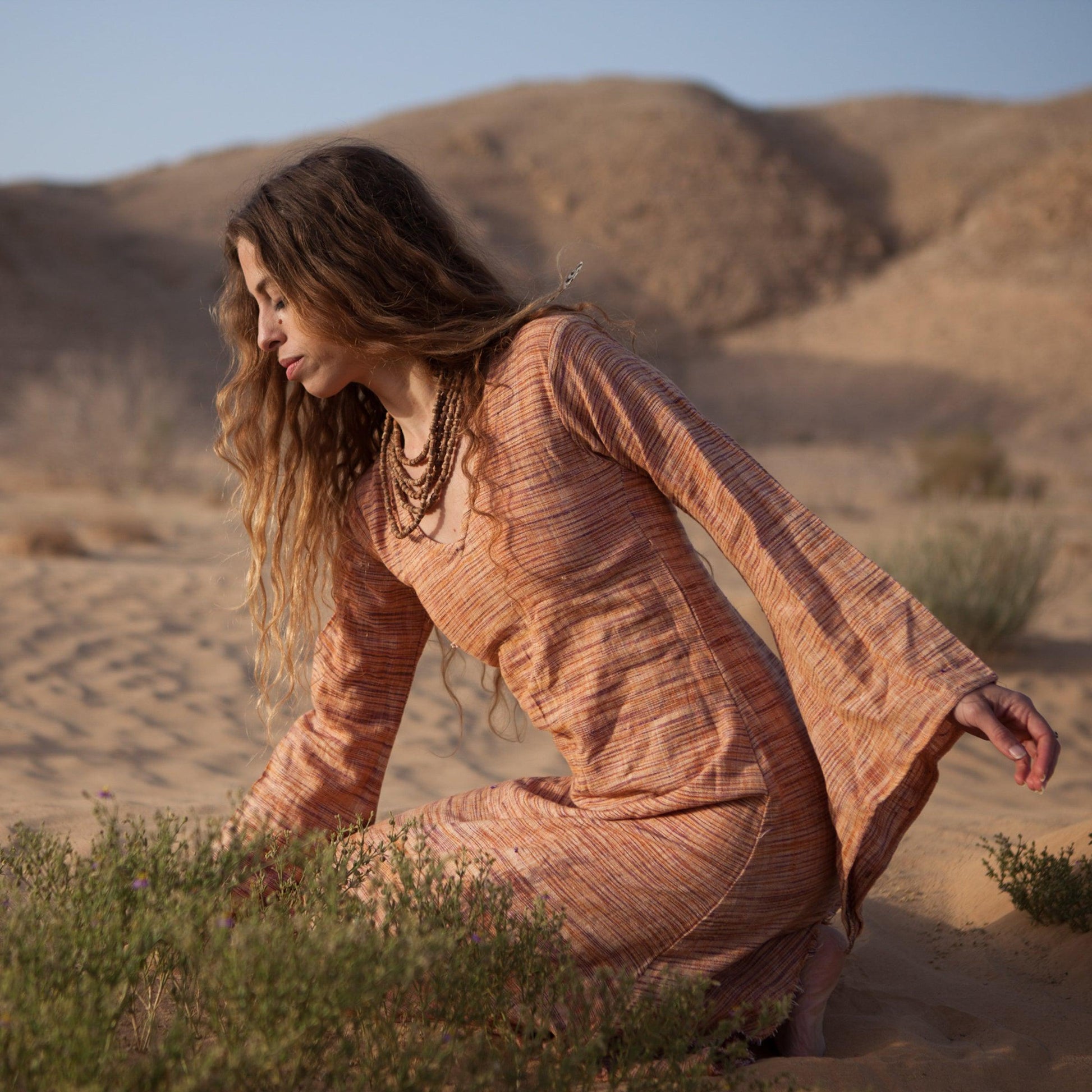❂ long sleeved dress with Wide Bell Sleeves . you can wear this beautiful dress alone or with long pants or a skirt underneath .. as it is great as a layer . makes you feel like a earth fairy ❂