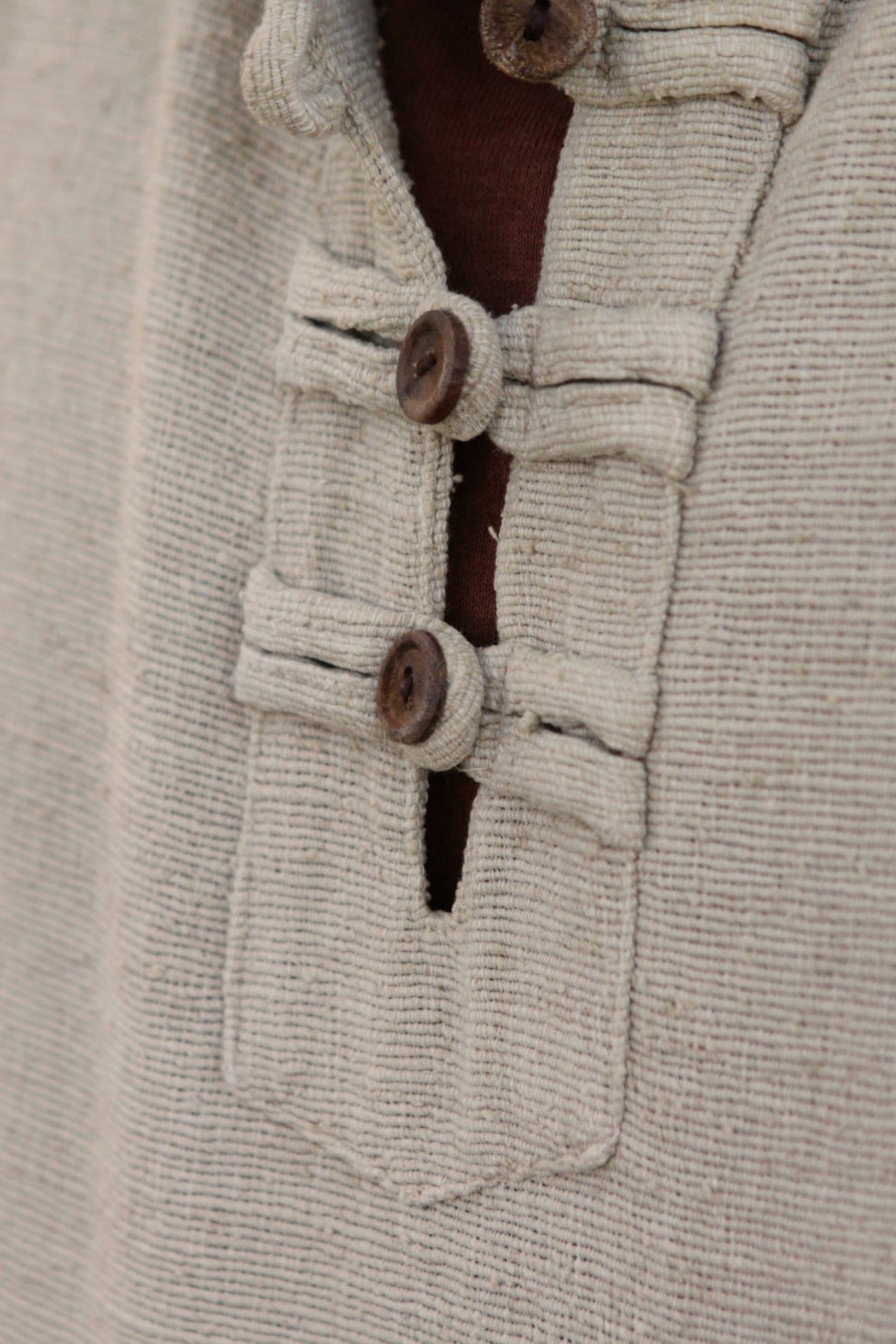 ❂ pullover with hoodie and Coconut buttons made from Handwoven Raw Silk in it's natural color ❂
