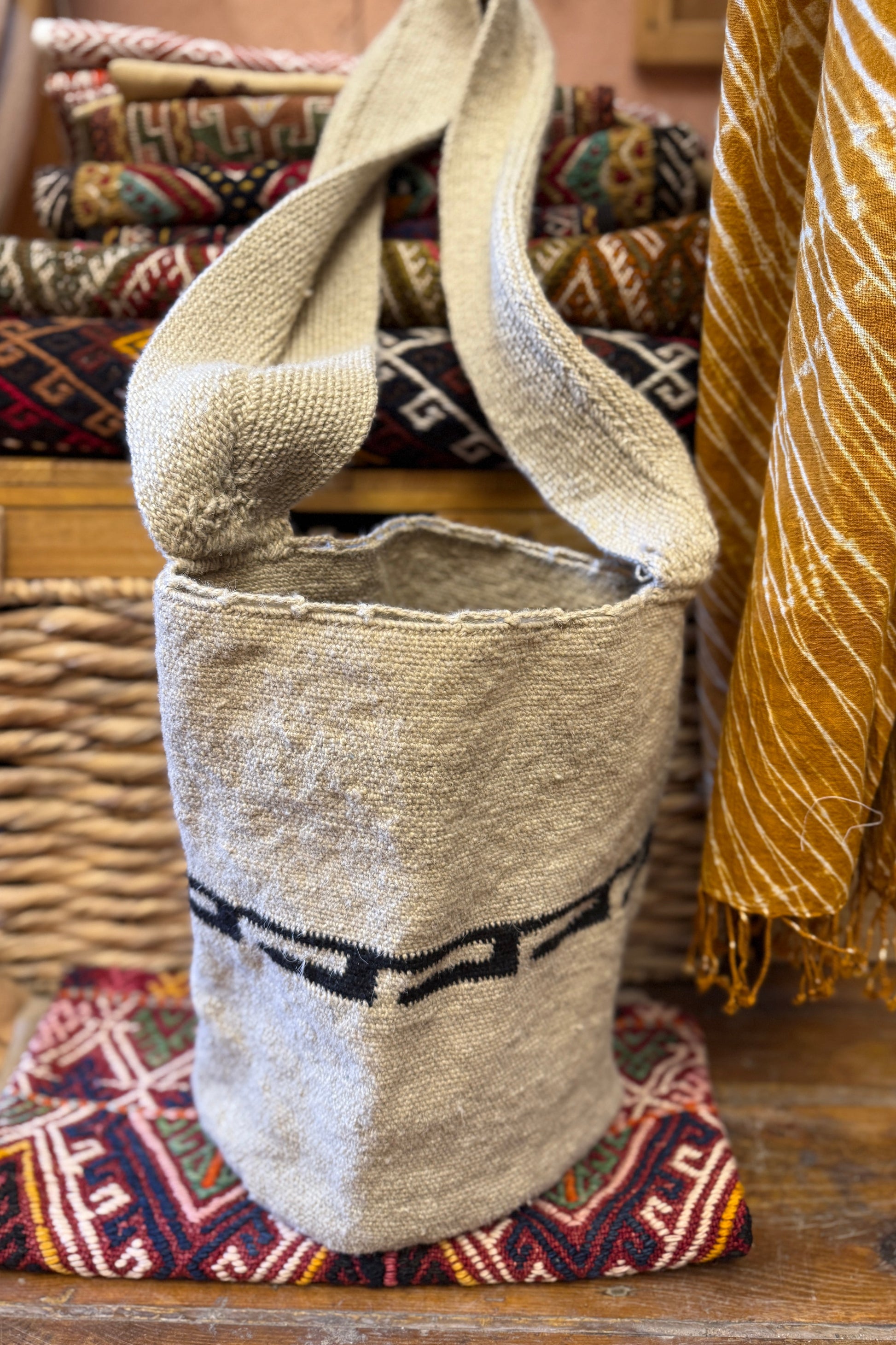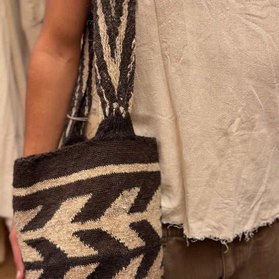This Arhuaco mochila is made from raw sheep wool, handspun and hand stitched. The texture and the stitch rhythm reflect the time and skill behind traditional handwork.