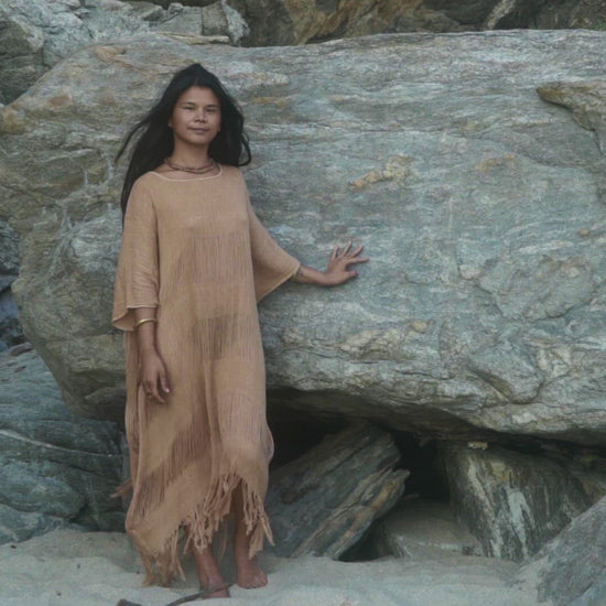 Frayed Coyuchi Cotton Kaftan >> Native Brown Cotton >> Hand Stitched Kaftan