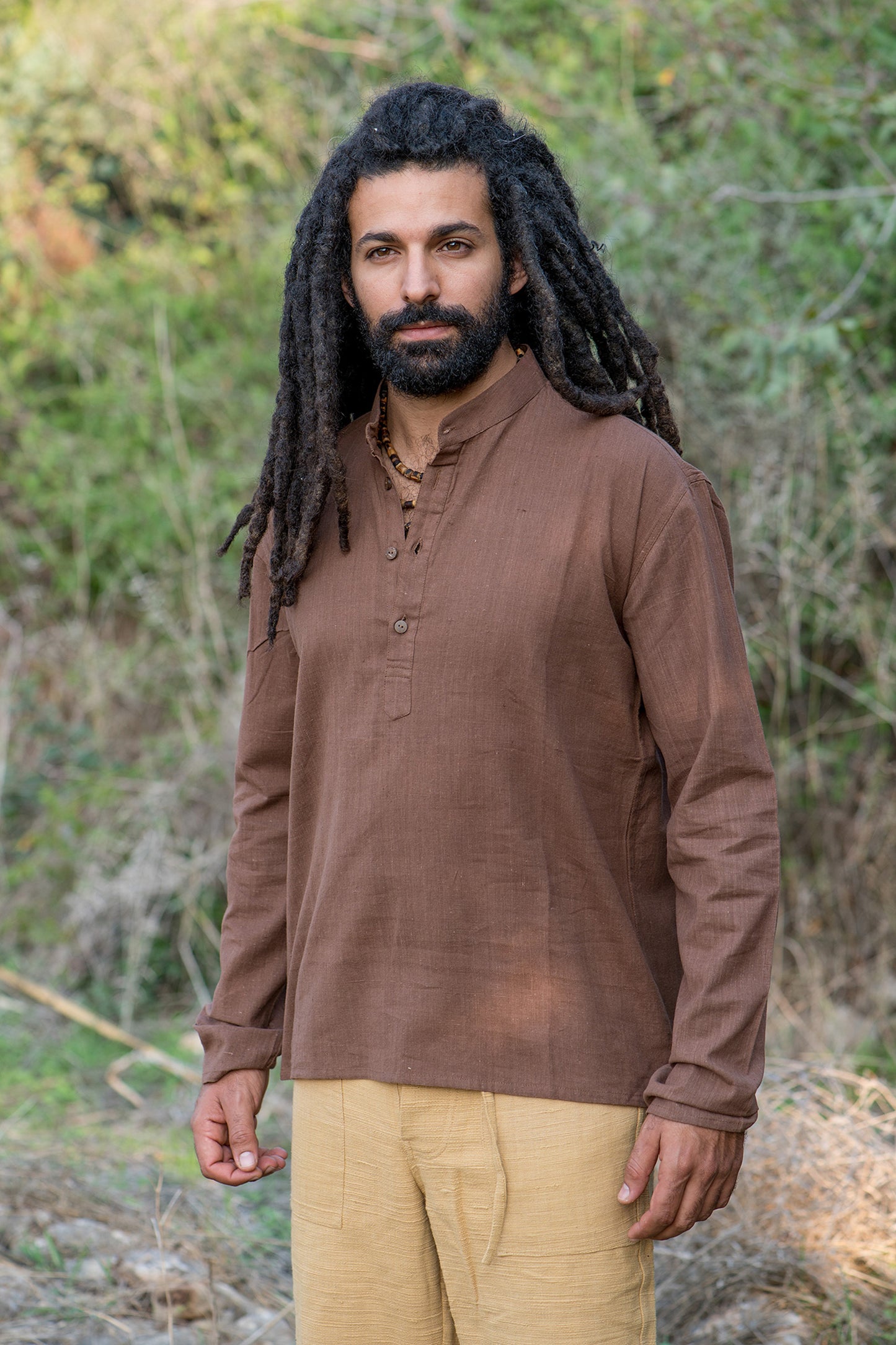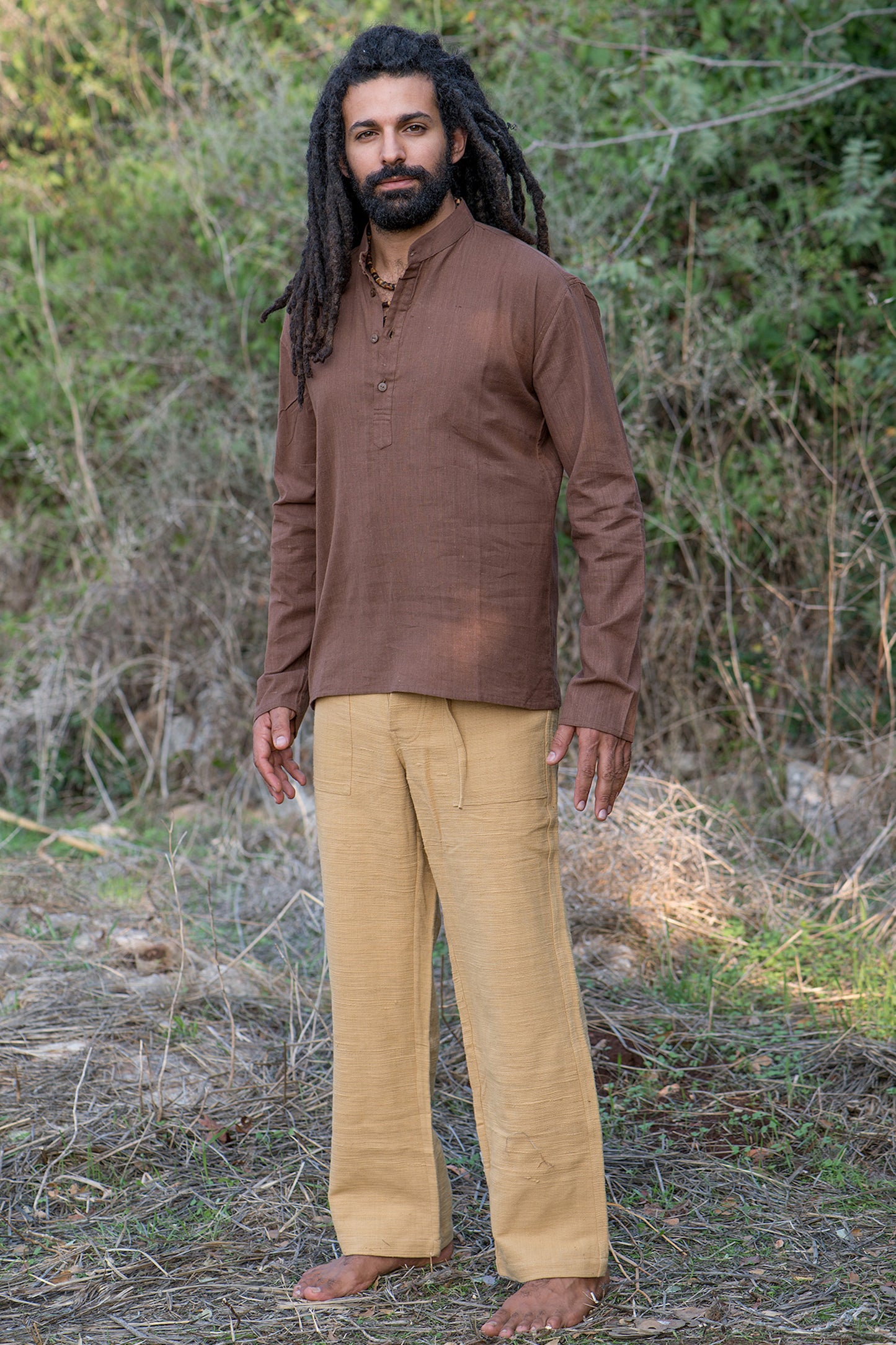 ❂ amazing long sleeve man collared shirt in Natural Color, Natural Dye Light Brown and Natural Dye Brown made of Handwoven Khadi Cotton ❂