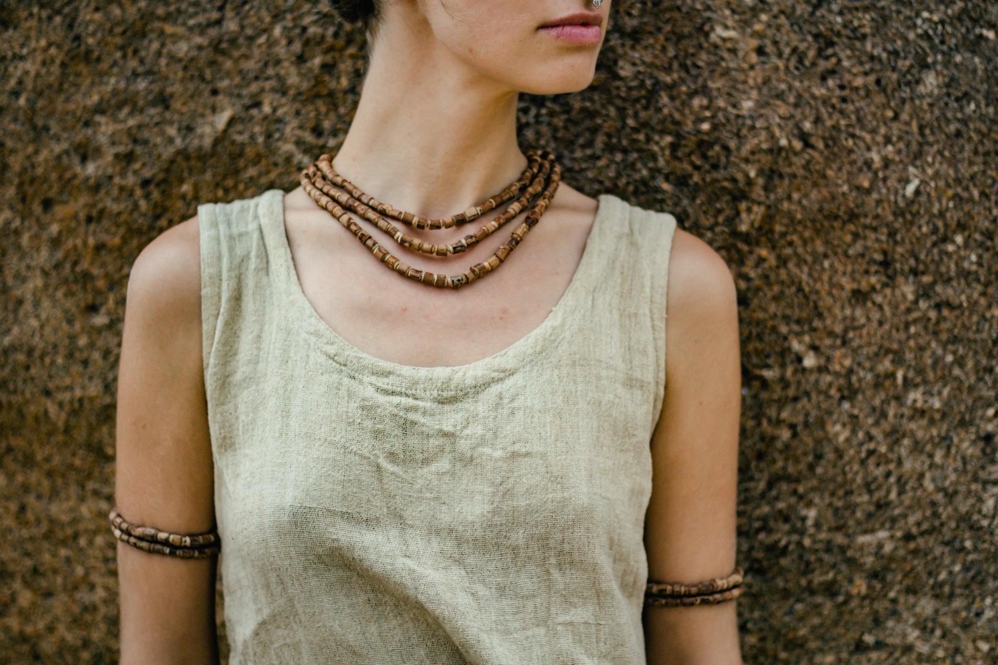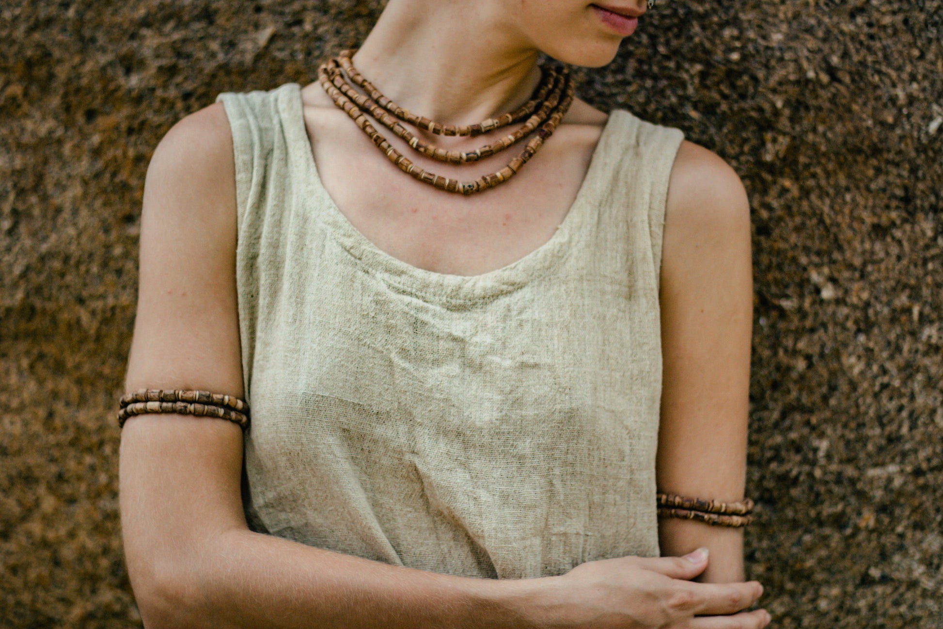 Feel free to shower or swim with any of our jewelry ~ take in consideration that natural materials get darker with time ~ Natural materials can be polished with oil ~ Brass can be polished with vinegar or lemon juice to restore brightness 💗